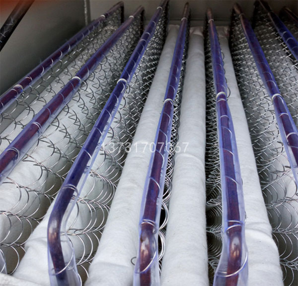 除塵骨架采用鋼絲框架和彈簧絲,彈簧絲具有很好的伸縮性,振動電機在帶動濾袋振動時,彈簧絲有助于濾袋表面的灰塵抖落。